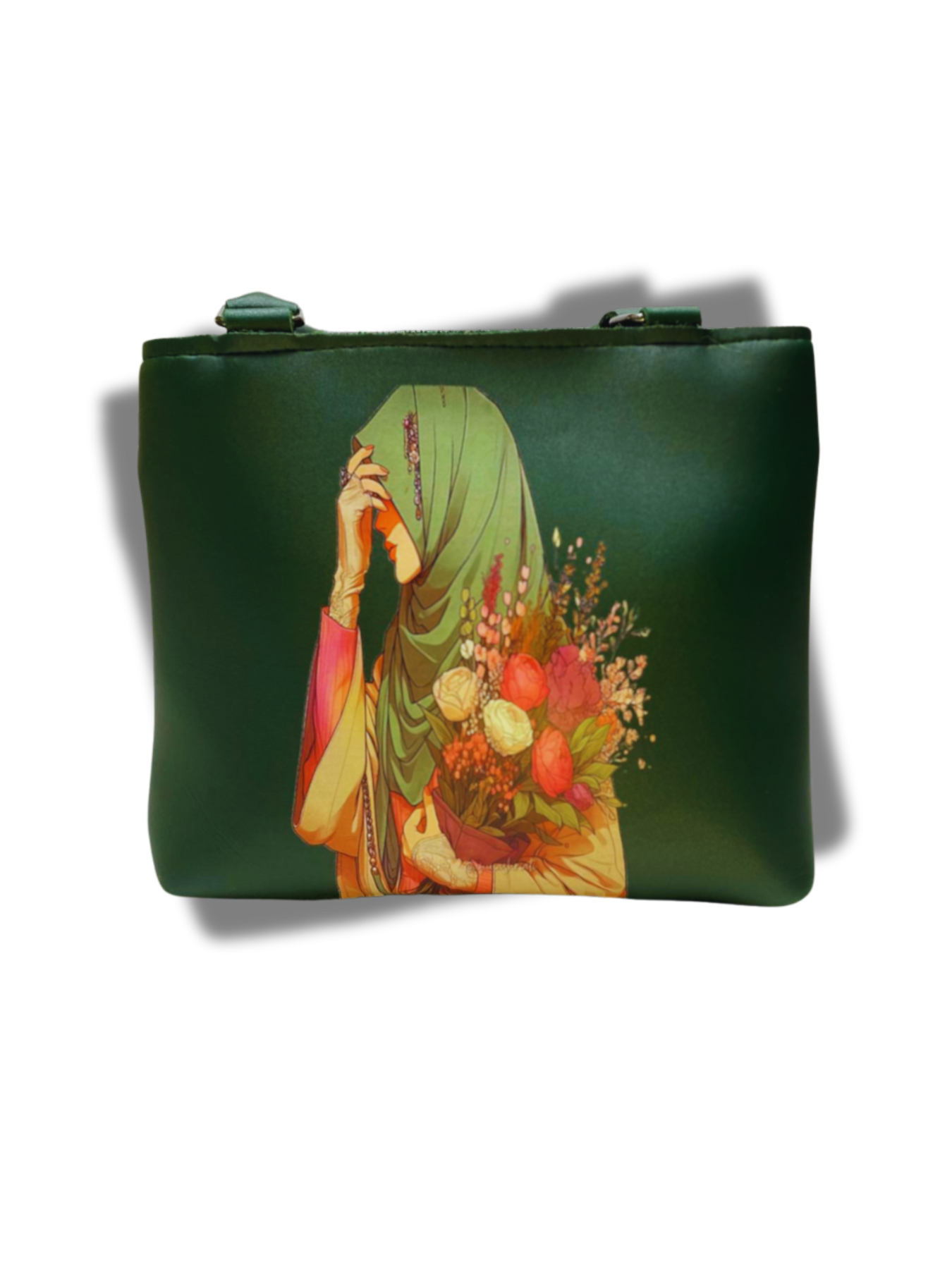 Add grace and culture to your look with the Eandore Modest Elegance Tote Bag — featuring a serene woman-in-hijab art print paired with soft green tones.